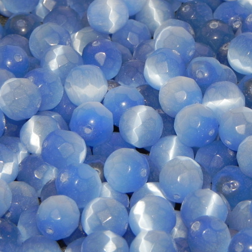 Glasperlen Katzenauge facettiert hellblau